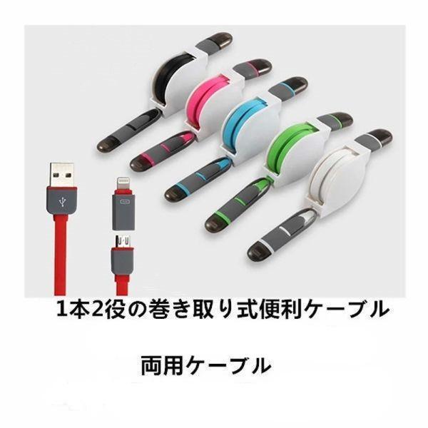 iPhone6/Plus/5S/5/Android/Apple対応!両用巻き取り式iPhone/Micro USB ケーブル/アイフォン